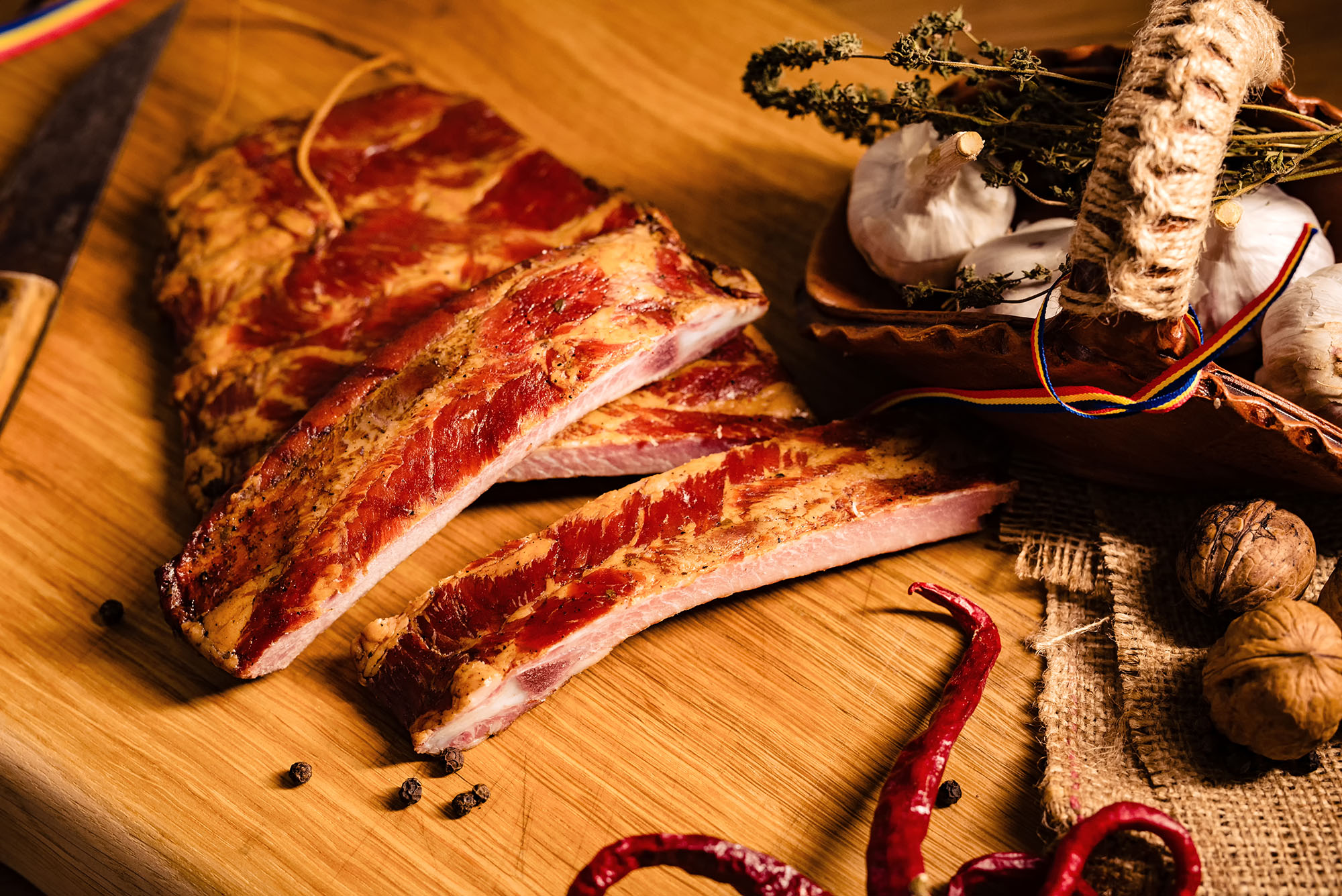 Ingrediente: coaste de porc (origine UE), condimente naturale, sare nitrică (sare, conservant: nitrit de sodiu).